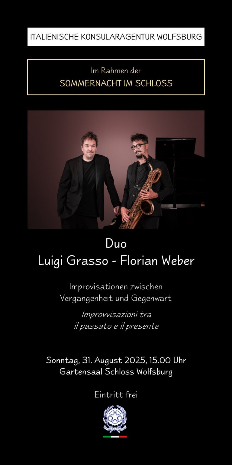 Eintritt frei! Karten sind erhältlich während der Öffnungszeiten in der Italienischen Konsularagentur, restliche Karten an der Abendkasse, solange der Vorrat reicht.